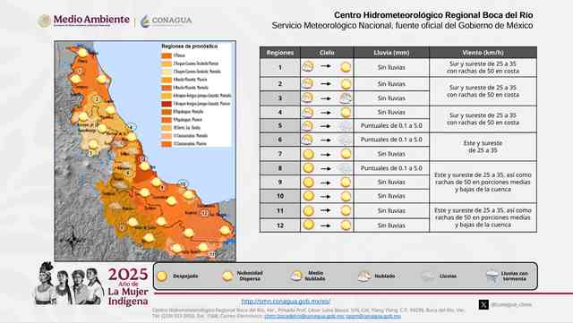 Para esta jornada se espera ambiente diurno muy cálido, viento del Sur y Sureste con rachas frescas a ocasionalmente fuertes en las zonas típicas y bajo potencial de lluvias, sin descartar, algunas por la tarde en montañas.