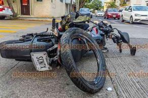 Encontronazo entre una motocicleta y un taxi ocurrió la mañana de este jueves, lo que dejó 2 lesionados, el tripulante de la moto y un menor de edad que iba como pasajero en el auto de alquiler. Presuntamente el ruletero no tomó la medida precautoria al atravesar la avenida 1° de Mayo cuando circulaba en la calle Juan Enríquez de la colonia Flores Magón en el puerto de Veracruz.