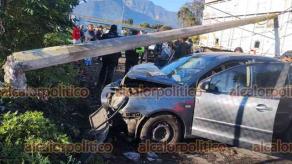 Dos personas lesionadas tras el choque de un auto contra un poste en Ixtaczoquitlán