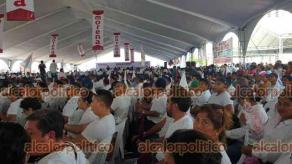 Los asistentes que se identificaban como petroleros y pancartas de Minatitlán y Acayucan, pidieron fotos y dieron peticiones a Adán Augusto López.