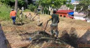 Más de 30 elementos del Ejército Mexicano y la Guardia Nacional se desplegaron este jueves en Coatzacoalcos para realizar trabajos de limpieza y desazolve en el canal pluvial que divide las colonias Petrolera y Puerto México, tras las afectaciones sufridas por 4 familias luego de que el acueducto colapsó.