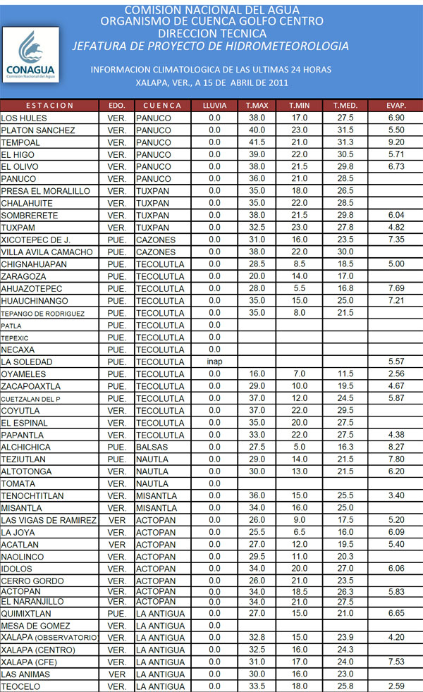 Conagua Xalapa, Ver. 15/04/2011