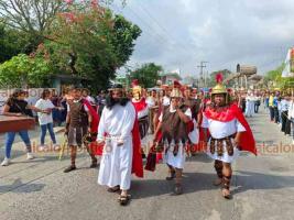 El viacrucis de este Viernes Santo en la ciudad de Álamo se realizó desde el Monumento al Colotero, con la participación de alrededor de 35 feligreses que representaron a distintos personajes, con Ángel Maclovio en el papel de Jesucristo. El recorrido para cubrir las 14 estaciones incluyó parte del bulevar Quintana Roo y la avenida Independencia, hasta llegar al patio posterior de la parroquia Nuestra Señora de los Dolores.