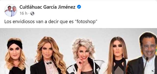 Por redes, el gobernador Cuitláhuac García difundió un meme suyo, mostrándolo como integrante de la agrupación musical JNS (antes Jeans). "Los envidiosos van a decir que es fotoshop", escribió. Algunos cuestionaron si lo “hackearon”, otros lo criticaron o simplemente se divirtieron con la publicación.