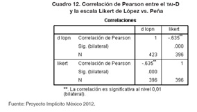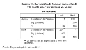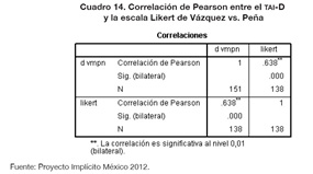 En el artículo se muestran los resultados obtenidos al comparar el TAI, que medía las preferencias de los participantes respecto a los cuatro candidatos a la presidencia de la república, con dos estudios de carácter explícito: el primero denominado Termómetro de Sentimientos y el segundo la Escala Likert de Preferencias Electorales. El indicador utilizado para comparar los estudios fue la Correlación de Pearson, que determina si la relación encontrada entre los diversos tests es significativa o no. El resultado de esta comparación arrojó una alta correlación entre las actitudes implícitas y explícitas de los participantes, todas mayores a .630, lo que convierte al test en una herramienta predictiva confiable del comportamiento electoral, incluso de predicción más exacta que los resultados obtenidos en una encuesta.