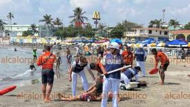 Como parte del protocolo de operaciones de búsqueda y rescate, se activaron una embarcación y 2 motos acuáticas para poner a salvo a las supuestas víctimas. El ejercicio se llevó a cabo en la playa Villa del Mar, ante la presencia de turistas que observaron la maniobra.
