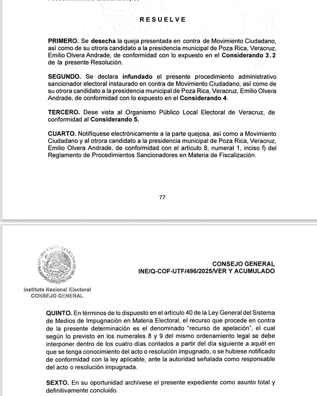 - El virtual ganador de la presidencia municipal del partido Movimiento Ciudadano publicó el resolutivo