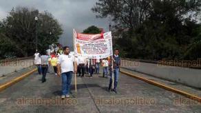Integrantes del Sindicato Único de Trabajadores del Colegio de Estudios Científicos y Tecnológicos del Estado de Veracruz (SUTCECYTEV) se manifestaron en las instalaciones del edificio de los Servicios de Administración Tributaria (SAT), para exigir a la Secretaría de Hacienda y Crédito Público (SHCP) que se aseguren los pagos de aguinaldo, retroactivo salarial y el incentivo para los docentes que aprobaron la evaluación.