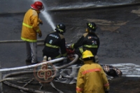 En una de las fotos se muestran dos cuerpos tapados con una cobija similar a la del muerto que quedó en la entrada de la destiladora, personal funerario y de la Procuraduría buscaba más cuerpos dentro de las bodegas ubicadas metros adelante de donde ocurrió la explosión.