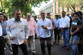 Proveedores de la administración de Javier Duarte de Ochoa, agrupados en la asociación "Empresas SOS" protestaron al pie de Palacio de Gobierno en reclamo ante la falta de pago por parte del gobierno de Miguel Ángel Yunes Linares.