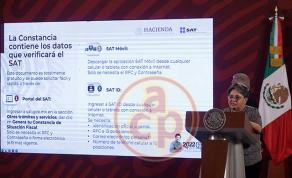 En la conferencia de prensa del presidente Andrés Manuel López Obrador, en Palacio Nacional, la titular del SAT dijo que esa institución no pidió la constancia.