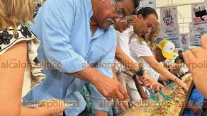El alcalde de Boca del Río, Juan Manuel Unanue Abascal, junto con la corte real de las fiestas de Santa Ana y los restauranteros, repartieron el filete entre los asistentes que hicieron fila desde la mañana para degustar el tradicional manjar.