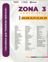 Adjunto foto del calendario de tandeos de CMAS para junio, pero nada que tenemos el vital líquido. De no brindarnos el servicio nos veremos en la necesidad de cerrar Carrillo Puerto, Alfaro y Benito Juárez. Muchas gracias.