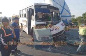 Un incidente que pudo terminar en tragedia se registró la mañana de este lunes en la carretera Coatzacoalcos-Villahermosa, a la altura de la comunidad de Nuevo Teapa, cuando un autobús de pasajeros impactó contra varios vagones de tren.