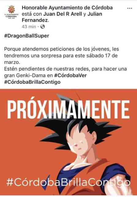 “Porque atendemos peticiones de los jóvenes, les tendremos una sorpresa para este sábado 17 de marzo. Estén pendientes de nuestras redes, para hacer una gran Genki-Dama, en Córdoba”, publicó la cuenta del Ayuntamiento.