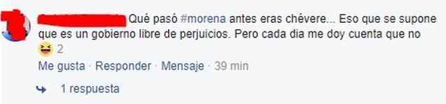 "Qué pasó MORENA antes eras chévere... Eso que se supone que es un Gobierno libre de prejuicios".