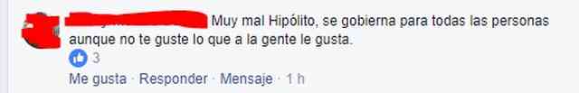 "Muy mal Hipólito, se gobierna para todas las personas; aunque no te guste lo que a la gente le gusta", fueron algunos de los comentarios publicados.