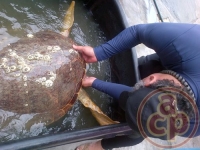 No obstante, los pescadores ante la cultura de conservación de esta especie reportan las tortugas al Acuario de Veracruz para que sean revisadas, alimentadas y posteriormente regresadas al mar.