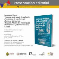 Se hace extensiva a todo el público la invitación para asistir a la presentación de Voces y rostros de la colonia Francisco I. Madero de Xalapa, Veracruz, este jueves 11 de agosto a las 18:00 horas en el auditorio de la GACX, ubicada en Xalapeños Ilustres 135, colonia Centro.