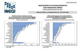 Al comparar los indicadores del Programa de Industria de la Maquila, Manufactura y Servicios de Exportación (IMMEX), el INEGI muestra que de mayo de 2020 a mayo de 2021 los obreros del sector trabajaron un 7.5 por ciento más de horas.