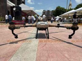 En la explanada municipal se desplegaron camionetas rotuladas como “Unidad de combate al dengue”, además de personal equipado para labores de control vectorial. Los drones, diseñados para dispersar insecticida, se sumarán a las acciones de fumigación manual y motorizada.