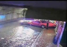 El suceso fue captado en video, en el que observa el auto rojo estacionado, para enseguida ser impactado en la parte trasera por la patrulla, de la cual descienden los oficiales para dar cuenta de lo acontecido.