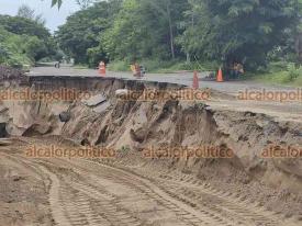 Tras el deslave registrado en Río Medio 3 en la zona norte del puerto de Veracruz, el cual socavó más de la mitad de la calle Río Pescadores, ya se encuentra maquinaria para su reparación.