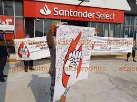 Santander se manifestaron en Boca del Río para denunciar el fraude en esta institución contra por lo menos 2 mil personas en todo el país.
