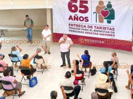 Manuel Huerta estuvo en Tantoyuca, en el norte de la entidad, para entregar tarjetas del Banco de Bienestar a los adultos mayores que se inscribieron en marzo y abril, quienes a partir de septiembre estarían cobrando su primer pago.