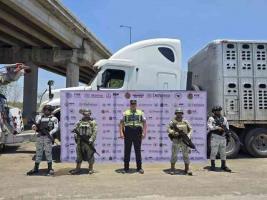 Un tractocamión que transportaba 69 cabezas de ganado vacuno presuntamente robadas fue localizado y asegurado por elementos del Ejército Mexicano y la Guardia Nacional, en un operativo llevado a cabo en la localidad de Las Chacas, municipio de Tampico Alto, en el extremo norte de Veracruz.