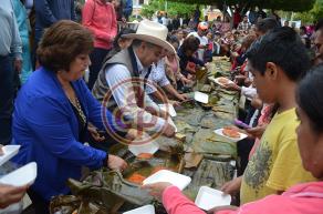 “Este tamal elaborado con las especias naturales ajonjolí, chile seco, frijol castelán y lo tradicional es justamente qué su proceso se hizo en el suelo, posteriormente se coloca sobre una base de piedras y alrededor del tamal se van colocando las brasas para que sea una coacción diferente”, citaba la promotora cultural, Eloísa Hernández.