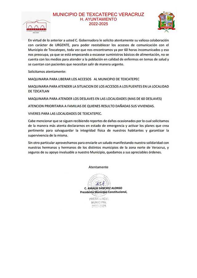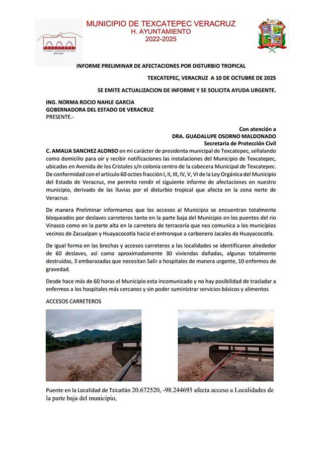 - A través de un informe de afectaciones, Alcaldesa pide apoyo a Gobierno Estatal ante los 60 deslaves registrados