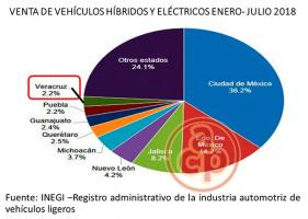 En los meses de enero a julio se comercializaron en el país 9 mil 326 vehículos híbridos y eléctricos, de los que sólo el 2.2 por ciento se vendieron en el estado de Veracruz (203 unidades), de acuerdo con informes de la Asociación Mexicana de la Industria Automotriz A.C (AMIA).