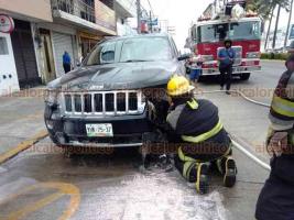 A la altura de la colonia Pascual Ortiz Rubio, en la ciudad de Veracruz, se presentó un conato de incendio de una camioneta marca Jeep, de color negro, la tarde de este lunes, generando la movilización de los elementos de Bomberos Municipales y de la Policía Estatal.