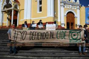 Con una manifestación en la Plaza Lerdo de Xalapa, estudiantes rechazaron la “imposición” de José Antonio Romero Tellaeche como director del Centro de Investigación y Docencia Económicas (CIDE).