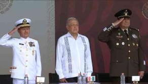 En el Campo de Honor del plantel y ante los secretarios de Marina (SEMAR), almirante José Rafael Ojeda Durán, y de la Defensa Nacional (SEDENA), general Luis Cresencio Sandoval González, el mandatario federal recibió los honores correspondientes y pasó lista a los héroes de la Escuela Naval y del Colegio Militar.
