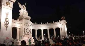 Otro grupo retiró las láminas colocadas para proteger el Monumento a Cuauhtémoc, en el cruce de Insurgentes y Paseo de la Reforma, realizaron pintas y prendieron fuego.