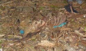 Los animales carroñeros hicieron de las suyas dejando únicamente los huesos, aparentemente presentaba un orificio por un impacto de bala, así como las manos amarradas, será la autopsia del médico legista la que determine las causas de la muerte.