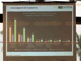 Quintos Anaya dijo que esta encuesta también reveló que el candidato más conocido entre la población entrevistada, es Yunes Márquez con un 91 por ciento de reconocimiento, seguido por Kuri Grajales con el 57 por ciento y en tercer lugar Exsome Zapata con el 30 por ciento.
