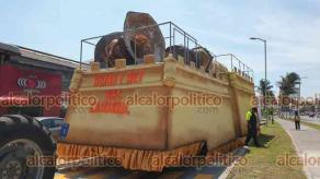 Los carros alegóricos del Carnaval de Veracruz ya están listos para el primer desfile que será de sur a norte este sábado. Para su traslado, fueron desmontados porque las figuras miden hasta 14 metros.