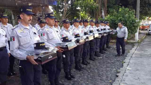 Córdoba, Ver., 12 de junio de 2019.- Efectivos del IPAX recibieron botas, gorras, camisolas y pantalón, mismos que portarán para prestar el servicio y que les forja un sentido de pertenencia a la corporación.