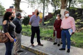 El presidente municipal, Ricardo Ahued Bardahuil, fue invitado por vecinos a visitar el área verde de esta misma calle, donde se realizarán los análisis para la rehabilitación integral del espacio en beneficio de la comunidad.