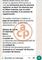 Es a través de mensajes de WhatsApp como los vocales de la Sociedad de Padres están informando que deberán cubrir la cuota a nombre de la Secretaría de Educación/Escuela de Bachilleres, Artes y Oficios y como fecha límite el 31 de agosto próximo.