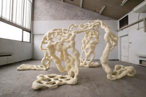 y Endo Kenji, realizadas en materiales diversos como mármol, vidrio, madera, metal, alambre, espuma de poliestireno, papel, resina, plata y silicón.