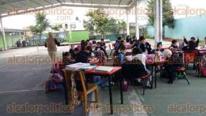 Tras los sismos acontecidos el pasado mes de septiembre, las aulas de 2a y 2b presentan cuarteaduras, estructuras dañadas, los cristales se estrellaron, el piso se sumió y están ladeadas las paredes, ante esto nuestros hijos, toman clases en la cancha.