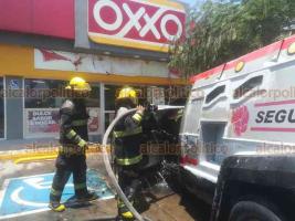 Una camioneta de valores de la emprsa SEGURITEC se incendió en el estacionamiento de un OXXO, en el fraccionamiento Xana en el Puerto de Veracruz, provocando la presencia de los Bomberos Municipales de Veracruz, Protección Civil y Policía, así como Cruz Roja.