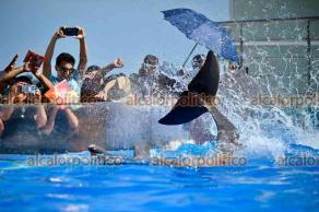 Aquarium de Veracruz luego de su remodelación, donde se presentó un espectáculo con 4 lobos marinos y 4 delfines a los que pusieron a cantar y brincar dentro de la piscina, para satisfacción de los presentes.