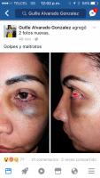 Guillermina Alvarado González hizo una publicación la mañana de este sábado, donde se observa con golpes y hematoma en el ojo y pómulo izquierdo.