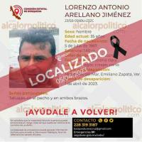 Se trató de Lorenzo Antonio Arellano Jiménez, de 35 años, de quien fue denunciada su desaparición el sábado 1° de abril.