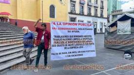 Trabajadores de la empresa Limpieza Especializada Industrial y Hospitalaria (LEIH), que labora para diferentes instituciones de salud tanto públicas como privadas, se manifestaron en la plaza Lerdo para pedir la intervención de la gobernadora Rocío Nahle ante la falta de pago y violación a sus derechos laborales.
